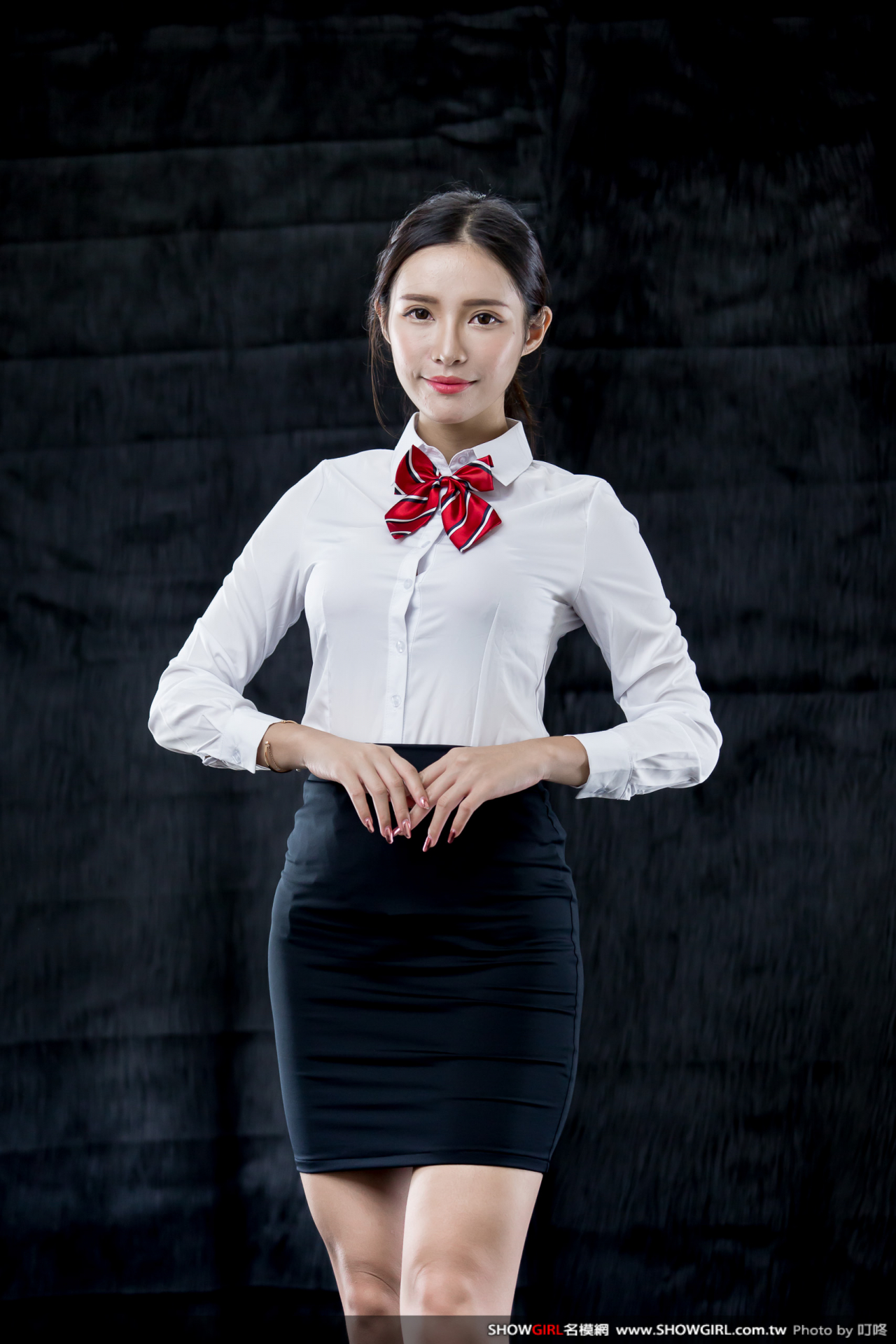 裙子是加長款的,長45公分,一般穿著約在膝蓋上10公分,也有短版的大概32公分長。